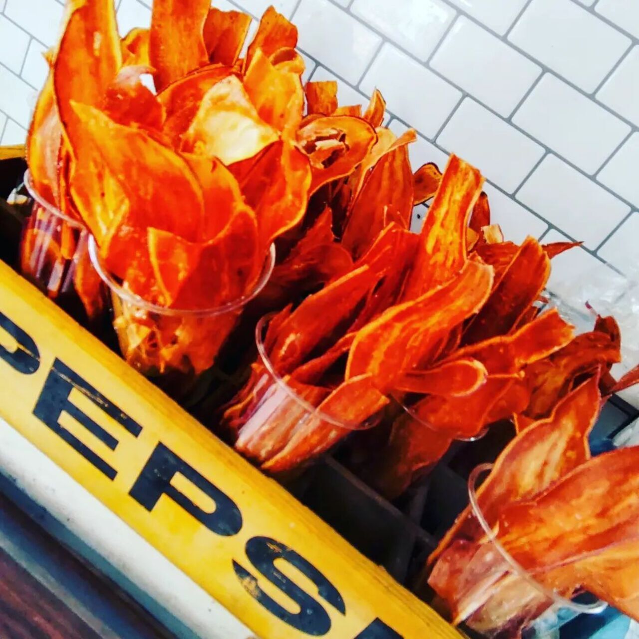 薄くて軽い、パリパリ食感のさつまいもチップスです